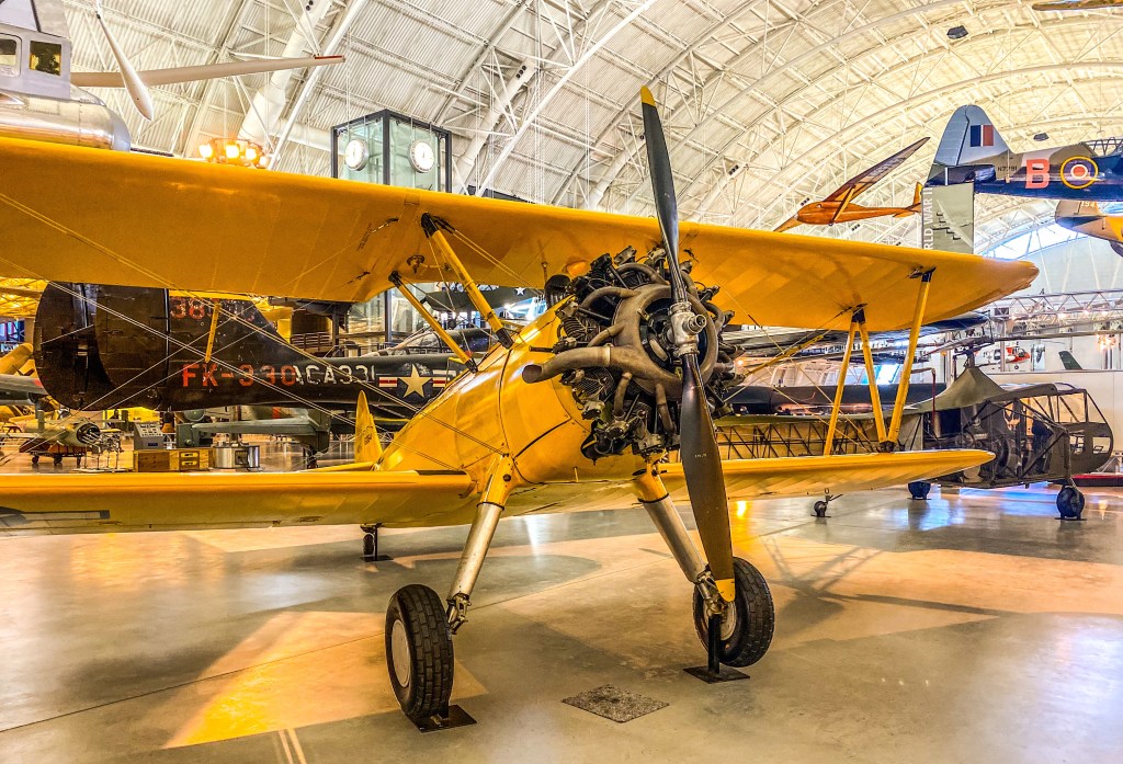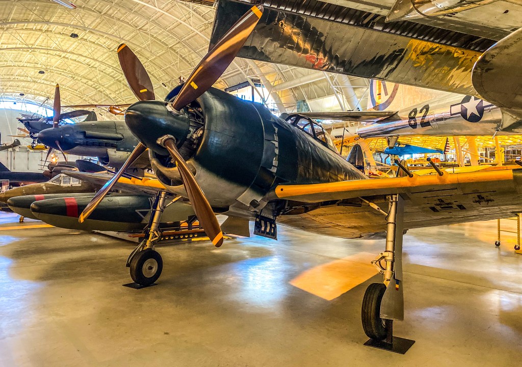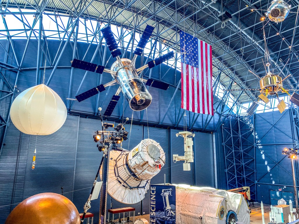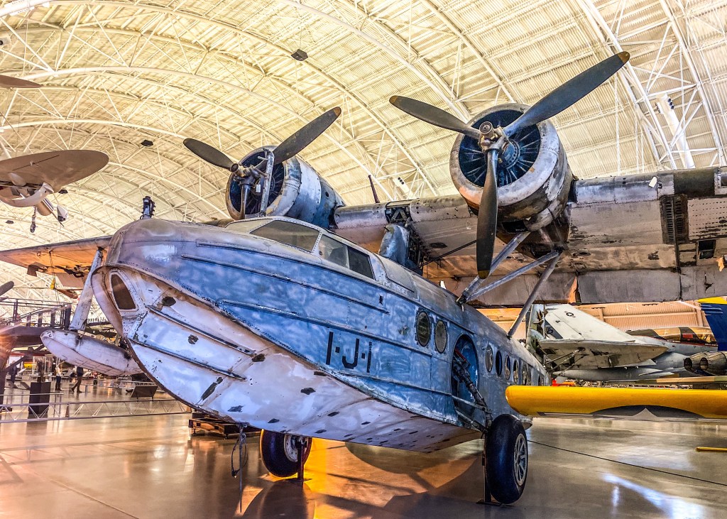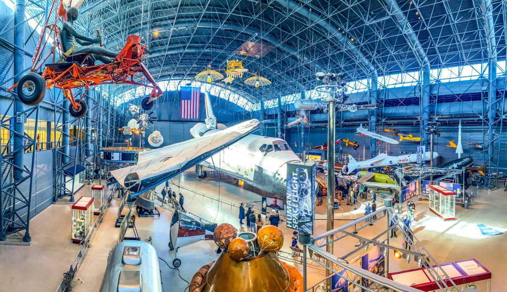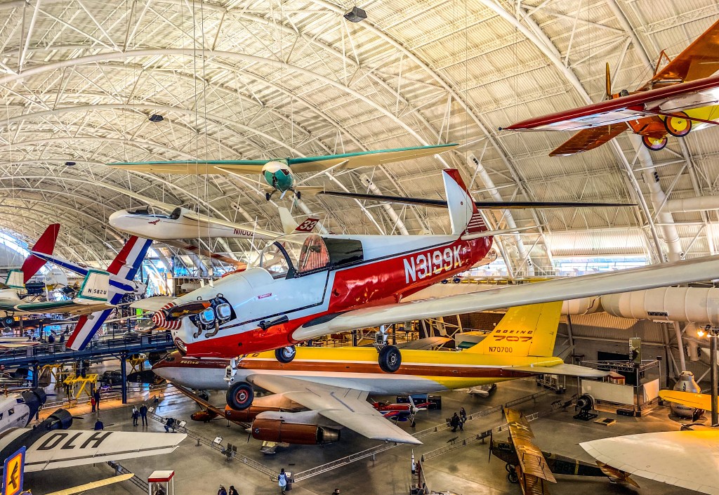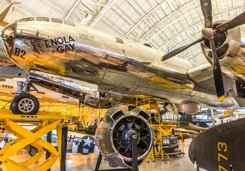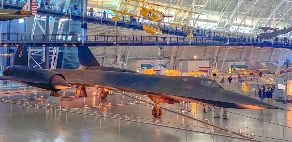 Space Shuttle Discovery within the James S. McDonnell Space HangerLockheed SR-71A Blackbird, the world’s fastest jet-propelled aircraft flying from Los Angeles to Washington, D.C. in one hour, four minutes and 20 seconds.Sikorsky JRS-1, an amphibious seaplane used during World War II.Boeing B-29 Superfortress “Enola Gay”, the most sophisticated propeller-driven bomber of World War II that dropped the first atomic weapon used in combat on Hiroshima, Japan.Mooney M-18C MiteBell H-13J, designed to evacuate President Eisenhower to a remote command location in the event of a military operation against the Soviet Union.