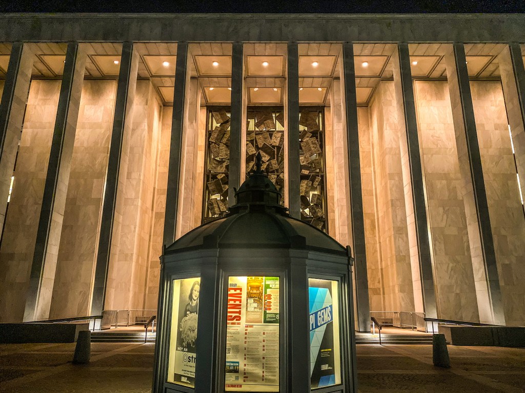 The library offers timed tickets which can be reserved online or in-person. When receiving the timed ticket, guests cannot enter the library before the time, but they can be 15 minutes late. While inside the library, there is a cloak room and lockers, and guests must be processed through security when entering and exiting. Additionally, you can view the library on your own, or wait at the information desk and participate in a guide tour. The guided tour lasts about an hour.