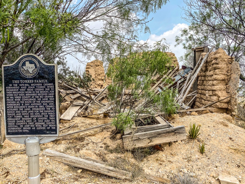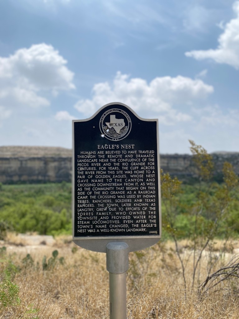 Langtry is a desolate railroad town in West Texas and is comprised of eight Historical Commission markers, such as Jersey Lilly, Old Hanging Tree, Langtry School, Prizefight, Torres Family. The town was established to support the transcontinental rail line for the Southern Pacific Railroad. The town was perched high on a cliff above the canyon of the Rio Grande, which made it easier for coal and oil burning locomotives as they required large amounts of water.