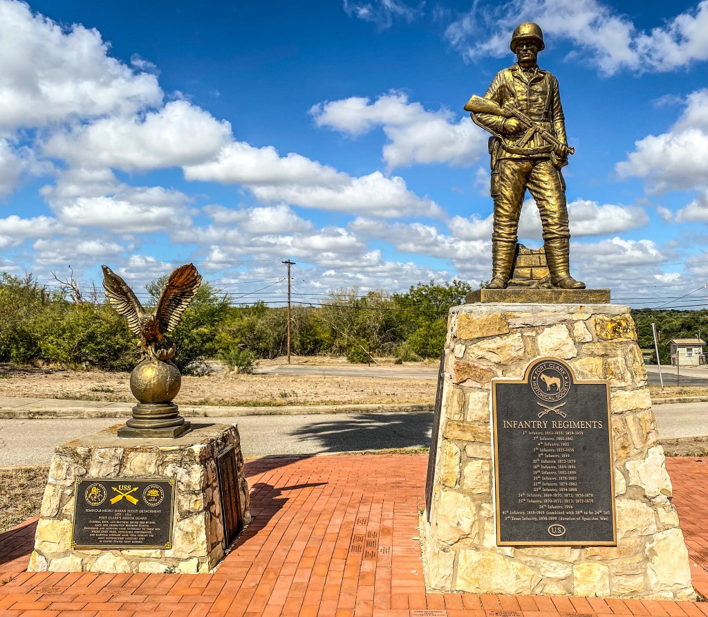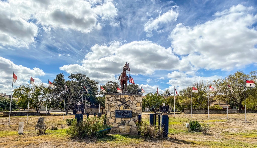 Fort Clark was established in 1852 at Las Moras Springs and was active until World War II. Initially, the spring was a stopping place on the great Comanche Trail into Mexico as it was considered a lifeline for a multitude of cultures and wildlife; however, the government recognized the fort’s potential to control travel to El Paso and prevent attacks from the Comanches, Apaches and other tribes on either side of the Rio Grande. In 1947, Fort Clark was the calvary fort and home of the famed Black Seminole Indian Scouts, as well as every historic Buffalo Soldier regiment in the US Army.