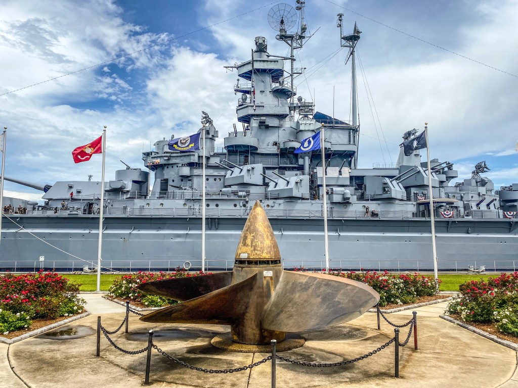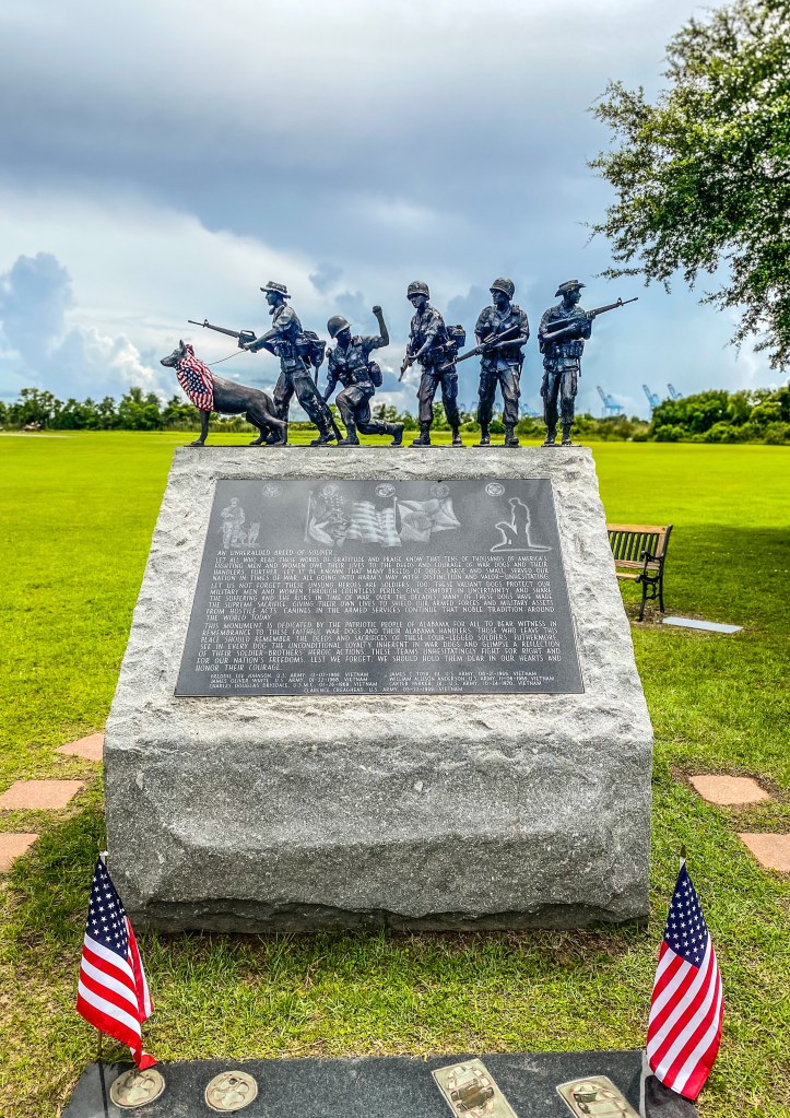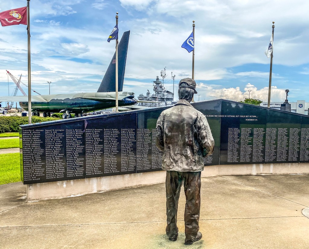 While the park is full of fun and exploration, it also honors those who served. Along quiet walkways, we paused at memorials for WWI, WWII, Korea, and Vietnam which is a powerful opportunity to teach anyone why these stories matter and why we remember. The park sits right on Mobile Bay, so after exploring, grab a lunch at Stevie’s Kitchen (don’t miss the potato salad) and relax in the shaded picnic areas. You can also stroll along walking paths or cast a line off the fishing pier. It’s the perfect mix of history and downtime.